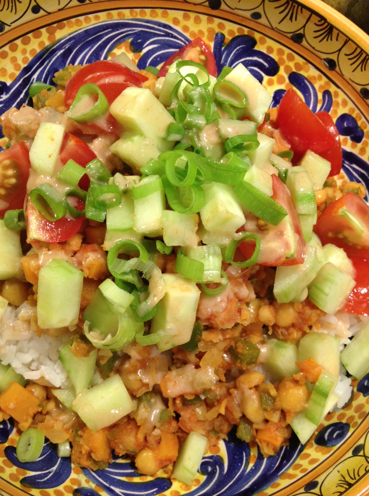 1. Preheat oven to 400F and line a baking sheet with foil. Place the sweet potatoes on the sheet and poke all over with a fork to avoid a carby explosion. Bake 50-60 minutes. Once cooked, remove the potatoes from the oven but leave the oven on. The foil, too. You’ll need that again.