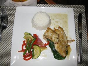 For dinner, we ordered the grouper ceviche. Mixed with mango juice, ginger and cucumber, this was a lovely and refreshing appetizer served in a beautiful martini glass with a compartment for ice underneath to keep the ceviche properly chilled.