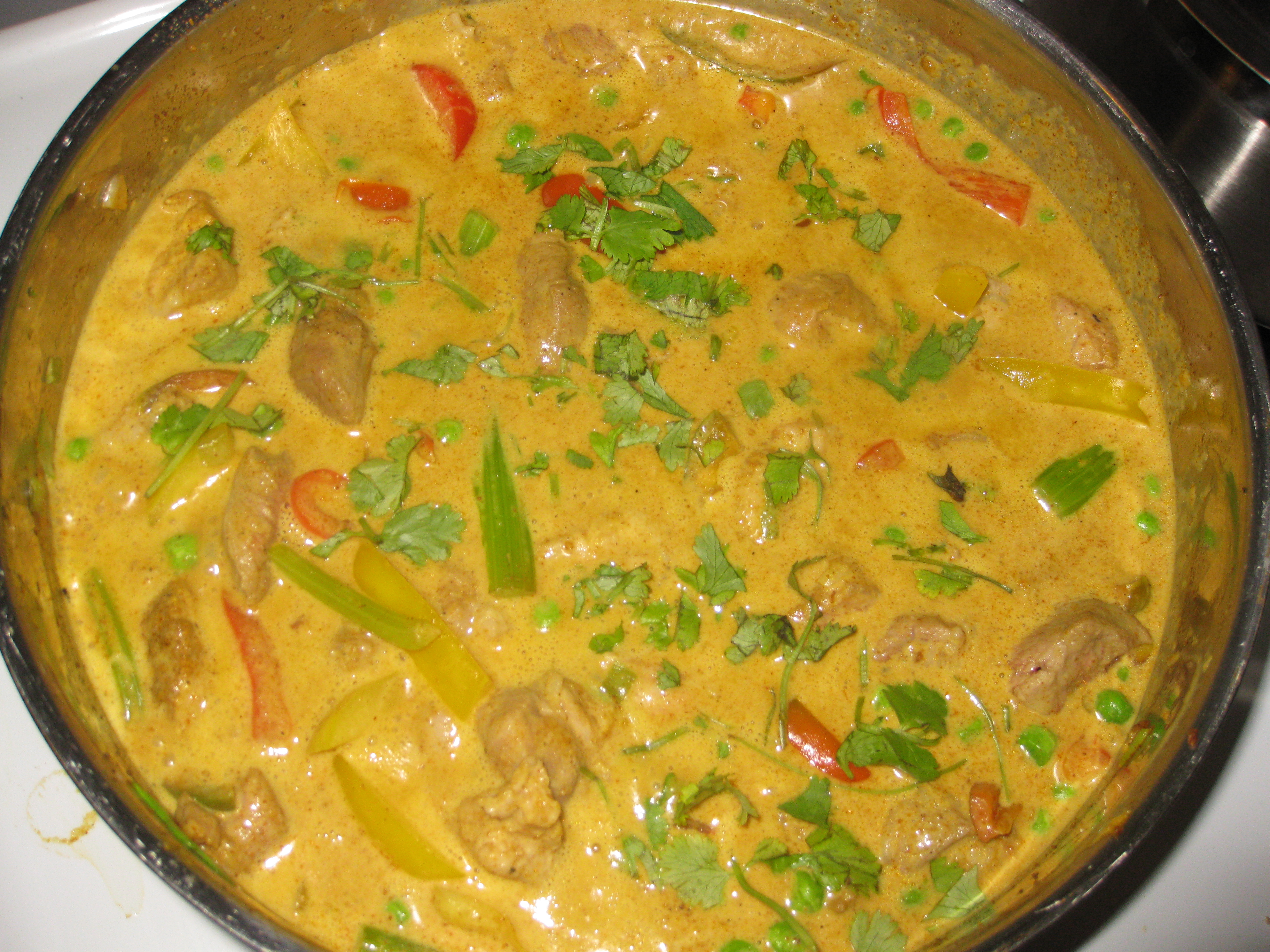 I absolutely love curries. I think they have a great balance of sweet and spicy and are incredibly versatile. I frequently make a Thai-influenced coconut curry that comes out better each time I make it so it shows up at the dinner table a lot around here.  The recipe below is vegetarian, but should you choose to add meat or seafood (like I did in the picture), it’s equally delicious. Great to take for lunch the next day – your coworkers *will* be jealous. 🙂